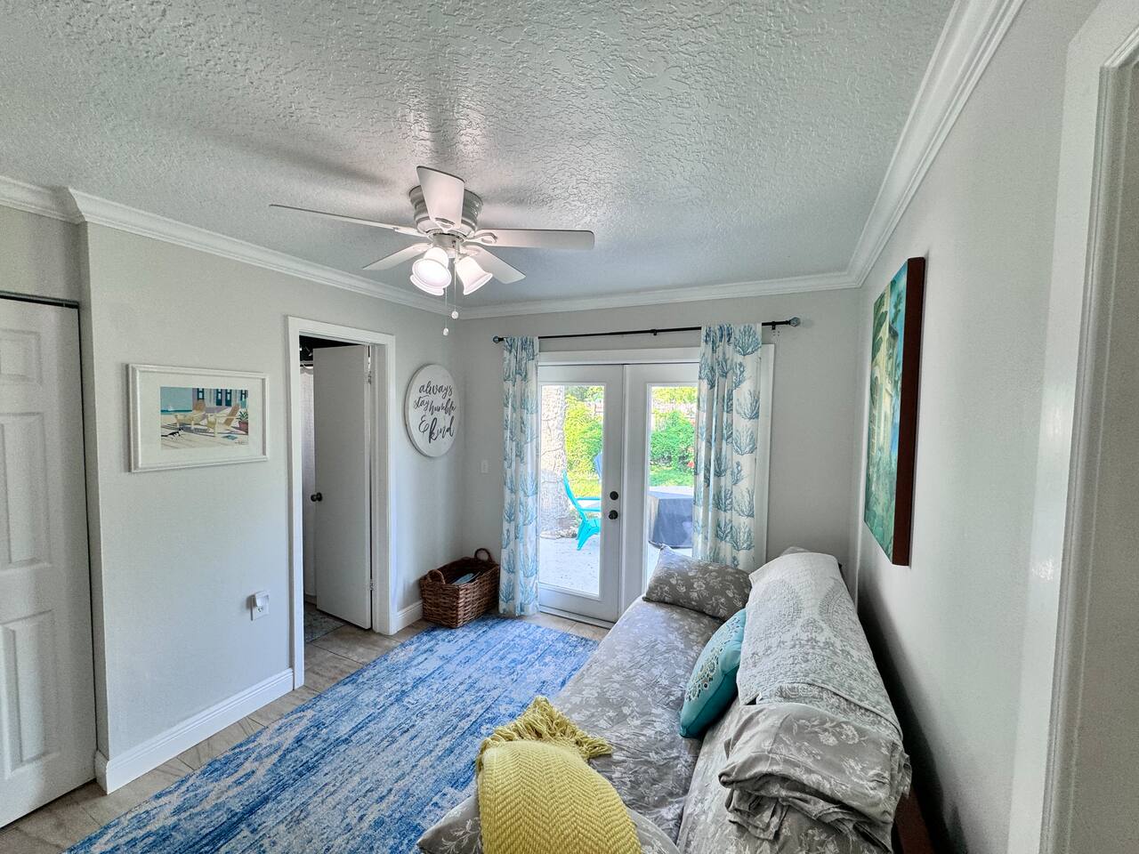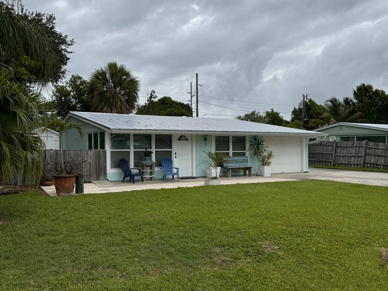 Come enjoy this bright, fully equipped 2/2 with a open floor plan and fenced private yard. Property is located at the end of the street with plenty of parking. Couldn’t ask for a more central location 5 min to Vero’s best beach, shopping, and downtown art district and restaurants. Check out my other listings. The house is fully equipped with everything you need. Ginger Lilly organic plant based body wash, shampoo and cond. Ebikes, golf cart, surfboards available at a fee and upon request.